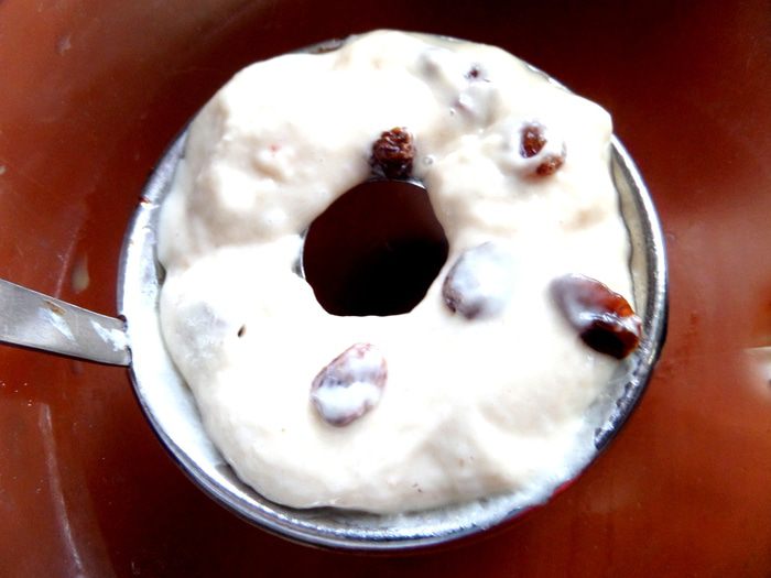 Спасибо Яне за вызов на битву! Вот повод достать ложку для пончиков,а к ней рецепт...Правда молоко я заменила сывороткой (ещё одна идея,куда её пристроить!). Почему Советский? Потому что ложка куплена в 1989 году))) Ну а без добавок от себя в виде изюма...обойтись не смогла,дорогие друзья)))