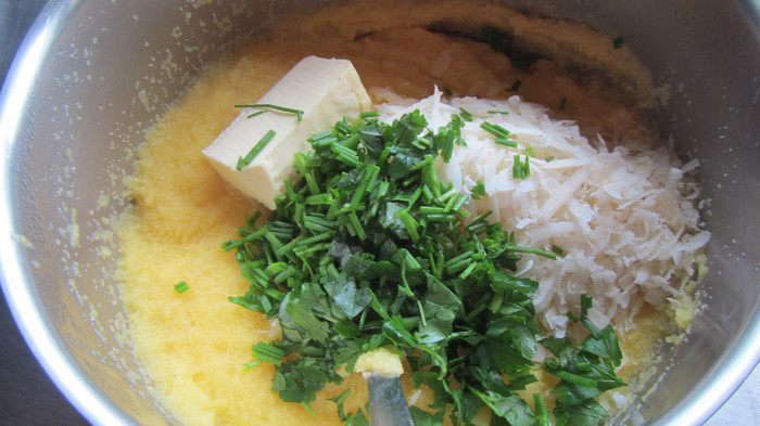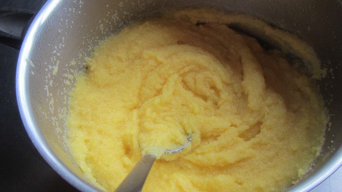 1. Поленту предлагается использовать быстрого приготовления. Она готовится за считанные минуты. Но при желании, конечно, можно взять и другие ее виды (они готовятся подольше - 30-40 минут).