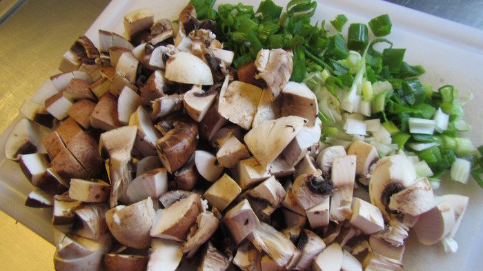 2. Грибы подойдут любые. И обычные шампиньоны, и лесные (с ними вообще супер получается), и замороженные. У меня были коричневые шампиньоны.
