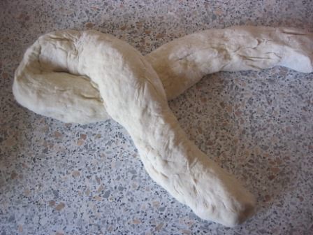 Тесто обмять и разделить на две части.