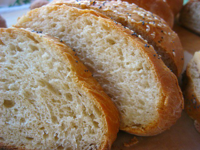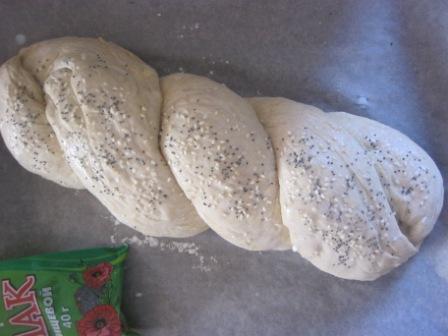 Перед выпечкой смазать молоком, посыпать кунжутом и маком.
