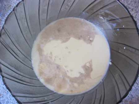В теплом молоке растворить дрожжи и сахар.