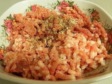 Приготовить мясной фарш, посолить, поперчить, приправить по вкусу.