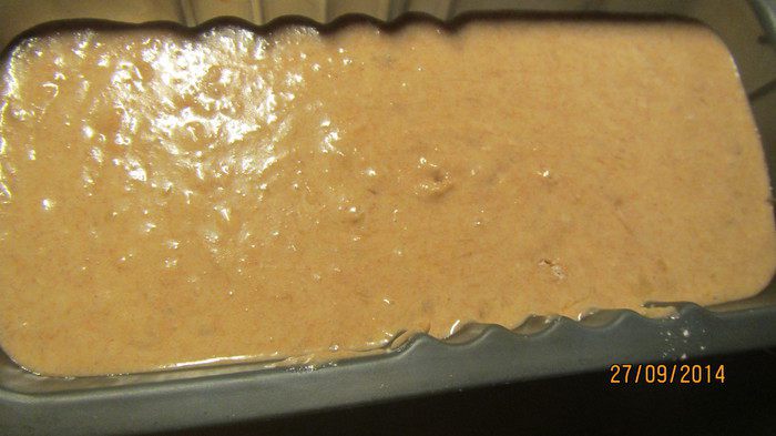 Добавляем муку и взбиваем еще раз. Выливаем тесто в форму для кекса и выпекаем при 180 гр около 1 часа.