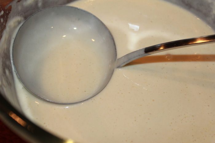 Тесто довольно плотное, может потому, что у меня использовалась пахта 0,3% жирности, и я добавила больше муки.
