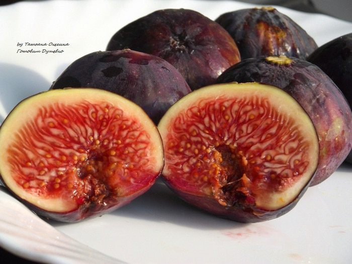 Настоящий зрелый инжир имеет черный или зеленый цвет (в зависимости от сорта) и множество семян-орешков внутри. На ощупь это упругий плод, поддающийся при нажатии.