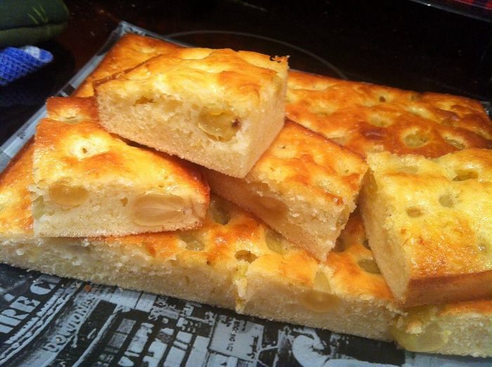 Перелейте тесто в форму для выпекания и положите в него виноградинки. Выпекайте в духовке около 45 минут.