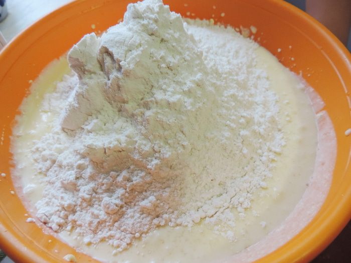 Отдельно скажу по поводу теста. Оно просто восхитительное. Оно абсолютно не похоже на привычное нам дрожжевое тесто, отличается большей мягкостью и структурой. В разрезе оно похоже на хороший бисквит. Мои подруги долго не могли поверить, что это не он, а дрожжевое тесто.