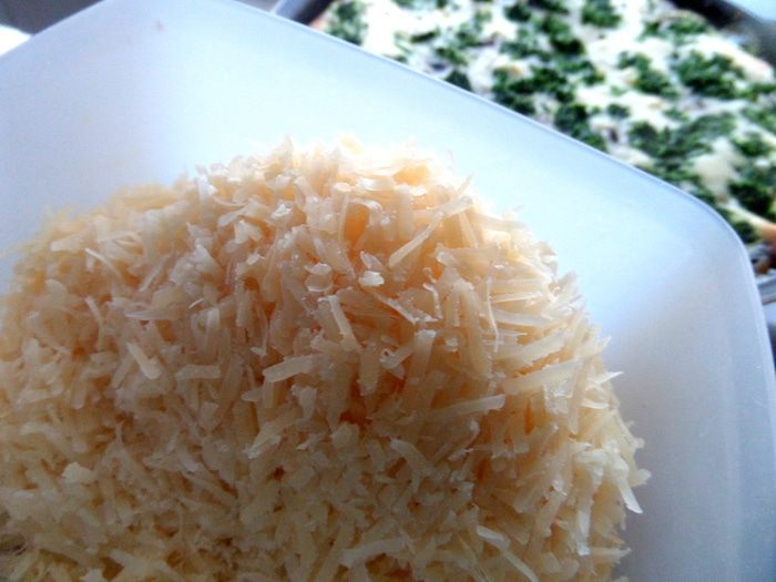 Сыр твёрдых сортов (у меня местный пармезан) натираем мелко...