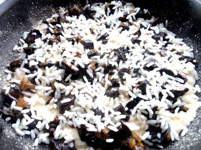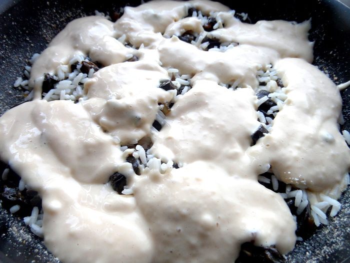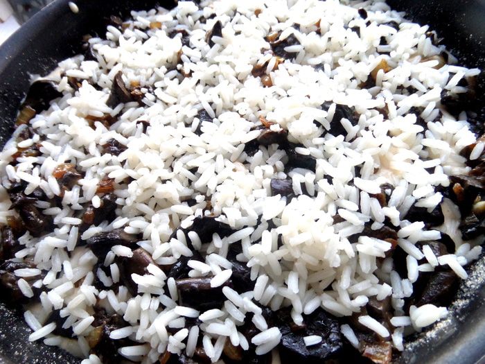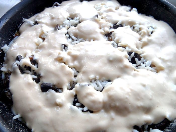У меня оставалась порция риса и я нашла ей применение! Немного насыпать риса на грибы.