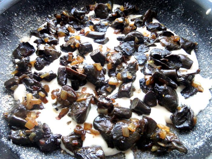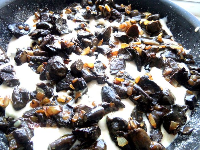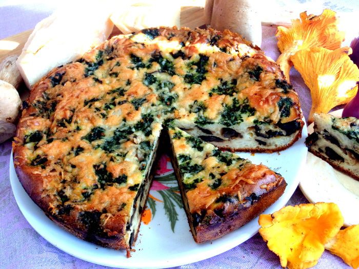 Такой пирог можно испечь и зимой из размороженных грибов и даже вымоченных солёных.