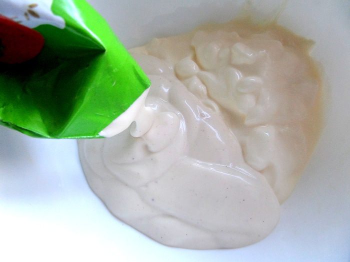 Тесто всем знакомо,для него смешиваем в равных (или примерно равных) пропорциях сметану и майонез.