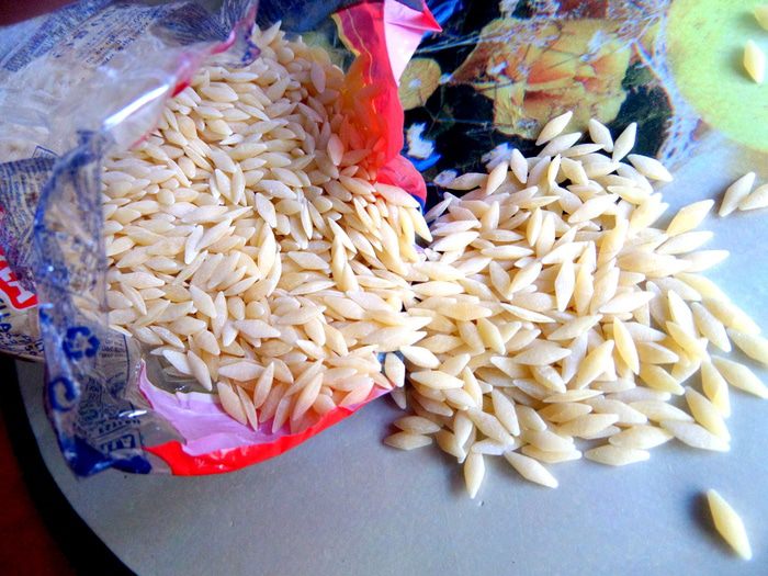 За 7 минут до выключения (такое время варки написано на моей пачке с макаронами) всыпать горсть любых мелких макарон.