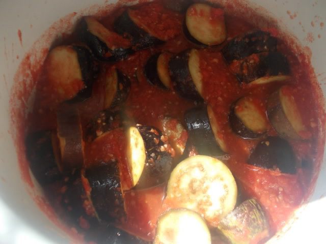 Добавить туда отжатые баклажаны и помешать. Накрыть крышкой и тушить минут 20-25,изредка и аккуратно помешивая. Баклажаны не должны превратится в кашу.