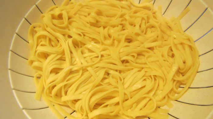 Пасту отвариваем до готовности и откидываем на дуршлаг.