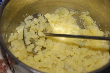 Приготовим тесто. Картофель отварить до готовности. Приготовить пюре.