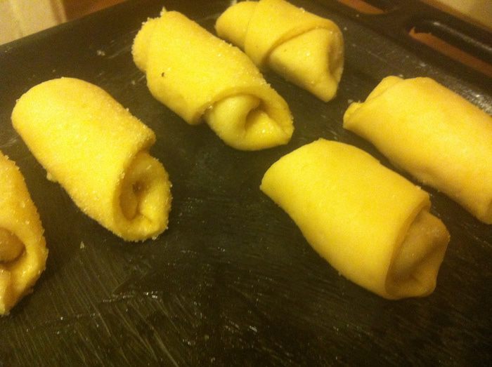 Класический рецепт песочные рогалики, можно эксперементировать с любой начинкой.