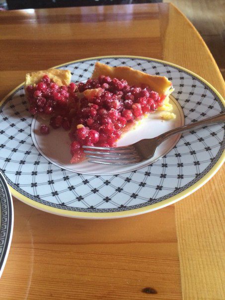 Это очень вкусный пирог. Тесто в меру сладкое. Тонкое. Весь акцент идет на свежие ягоды, залитые тягучей карамелью, для того, чтобы они не рассыпались. Этот пирог можно готовить как с брусникой, также и с земляникой или черникой. Приятного аппетита!!!!