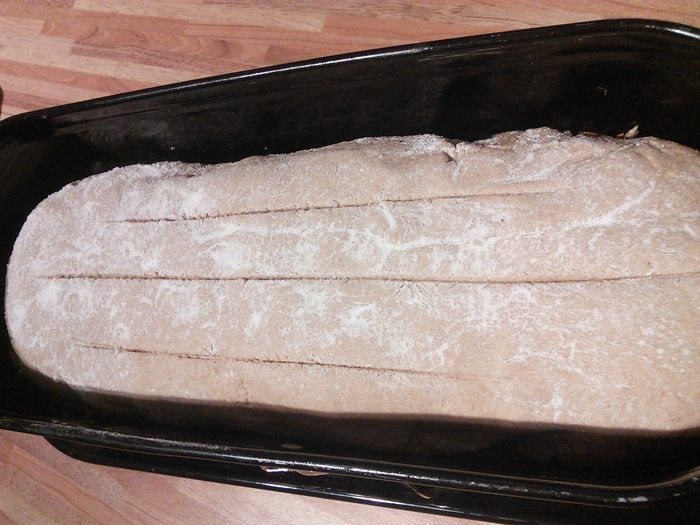 Так выглядит тесто через 1,5 часа. Сформировать батон.