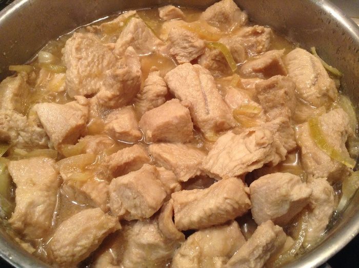 Переложить индейку на сковородку и обжарить пока не выпарится половина жидкости (приблизительно 30 минут).
