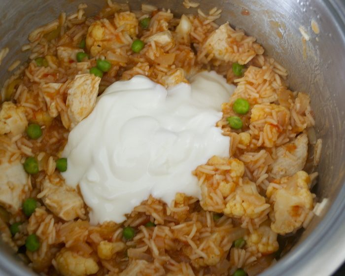 Добавить рис, соус карри и бульон...