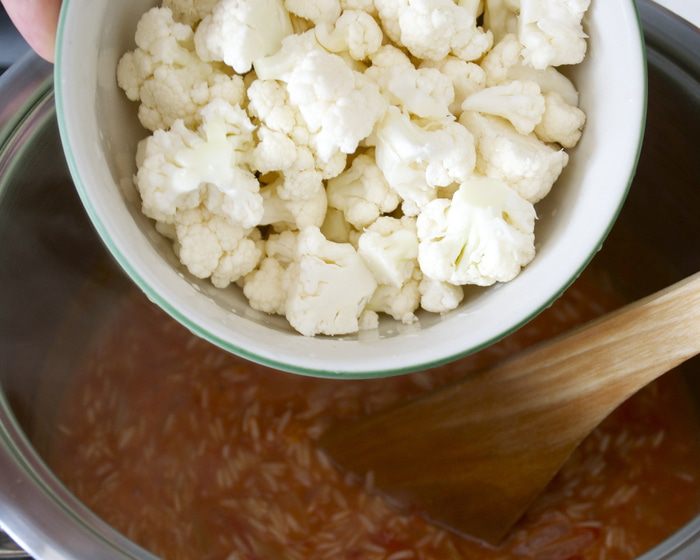 ... томаты, цветную капусту и изюм (если Вы его добавляете). Довести все до кипения.