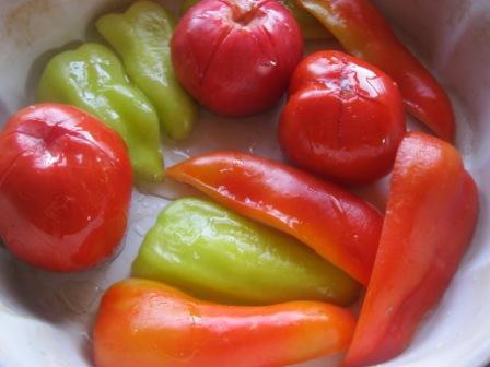 Сложить овощи в форму, сбрызнуть оливковым маслом ( 1ст.л)