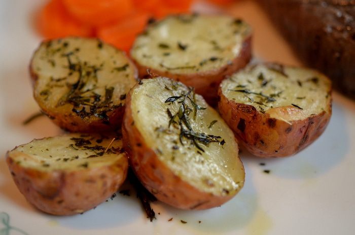 Картофельный гарнир к мясному блюду. Надеюсь вам понравится и этот вариант с травами пряными. Картофель желательно мелкий. Если у вас крупный разрежьте на четвертинки. Травы можно заменить на свежие по 1 ст.л.