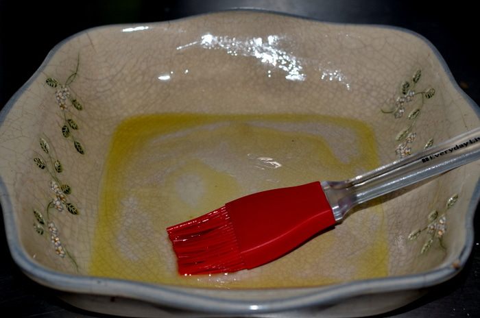 Слить воду . Жаропрочное блюдо смазать оливковым маслом или сковороду для духовки.