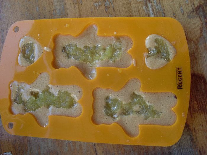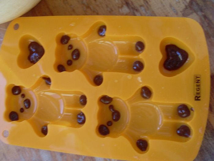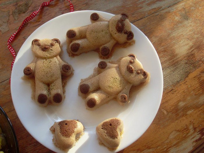 Взбить яйца с сахаром и солью в пышную пену, просеять к яйцам муку (2 столовые ложки с большой горкой), разрыхлитель, кукурузный крахмал и щепотку какао, для цвета. Аккуратно перемешать. Добавить масло, аккуратно перемешать. Отложить 2 столовые ложки теста и добавить к ним какао до коричневого цвета. Переложить коричневое тесто в полиэтиленовый мешочек, файл и т.д. Отрезать уголок небольшого диаметра.