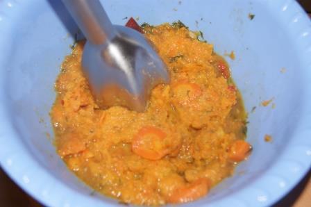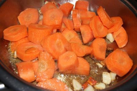 Добавить кориандр, соль (я не солила) и крупно порезанную морковь. Обжарить 5 минут.