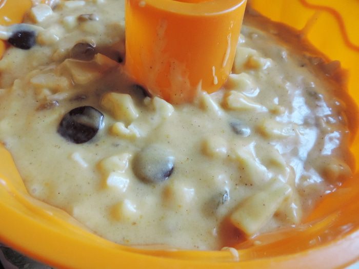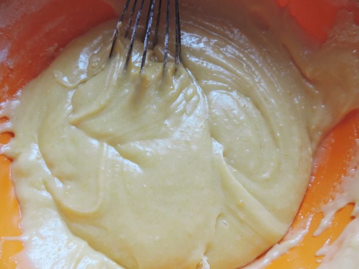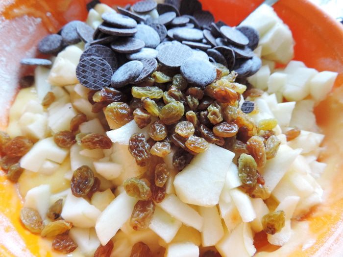Форму для кекса заполняем подготовленным тестом. Если у вас форма силиконовая, ее не нужно ничем смазывать. Обычную форму выстилаем бумагой для выпечки или смазываем маргарином и припудриваем мукой. Тесто хорошо поднимается при выпечке, поэтому оно должно заполнить форму не больше, чем на 2/3.