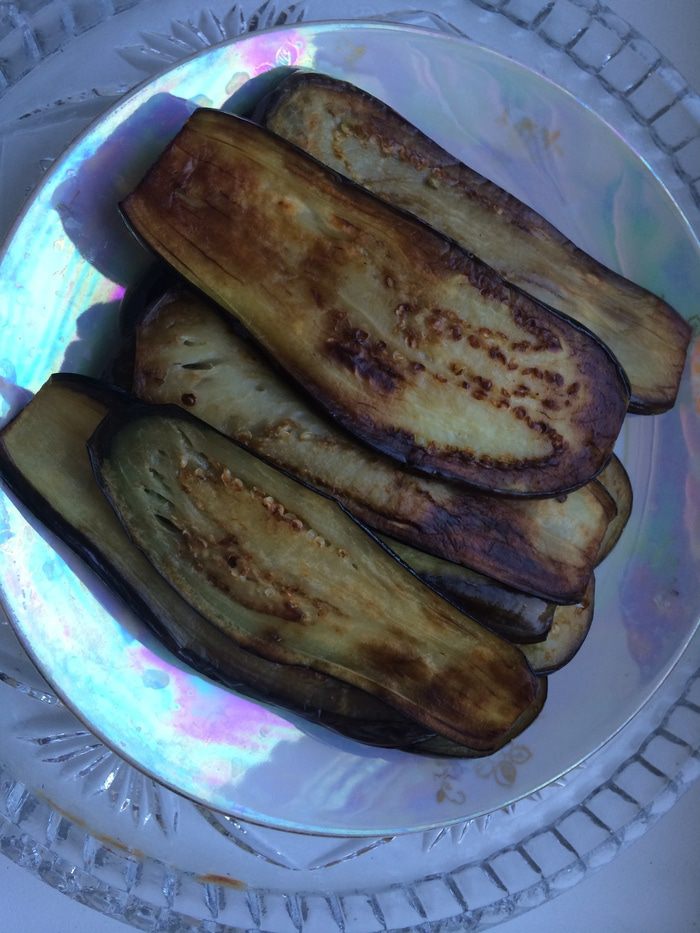 Обжаренные баклажаны сложить в тарелку и дать "отдохнуть".