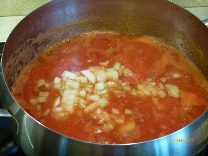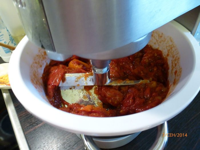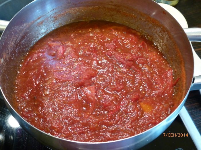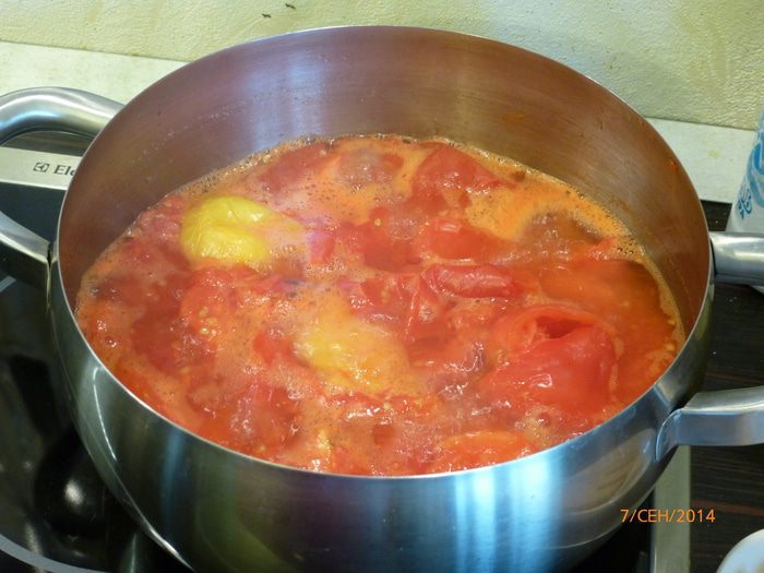 Ставим кастрюлю на средний огонь и варим помидоры до тех пор, пока кожица полностью не отделится от мякоти. У меня на это ушел примерно 1 час. Не забываем периодически помешивать. Кастрюлю крышкой не закрываем.