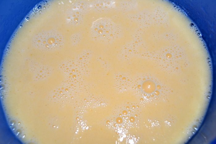 Яйца смешать с молоком и маслом.