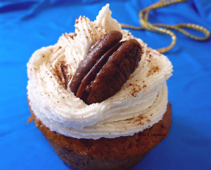 Пока кексы остывают , приготовить крем . Взбить сахарную пудру масло мед и корицу до крема образного состояния минут 5 .