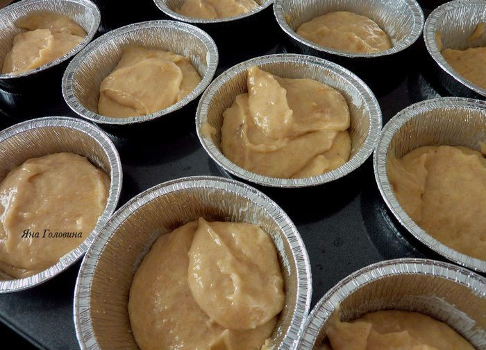 Подготовить формочки для кексов , промазать маслом .
