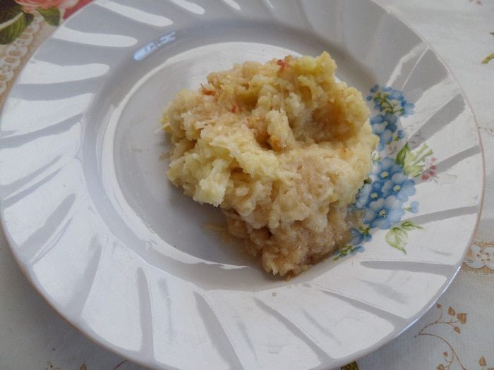 Добавляем яблоко к тесту-крошке. Замешиваем тесто.