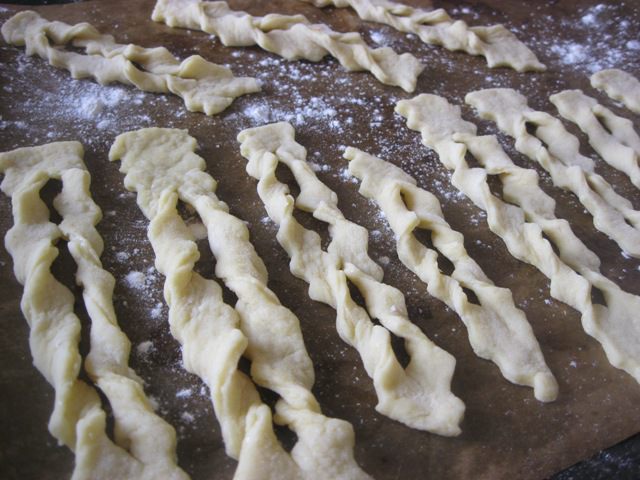 Из теста нарезать небольшие прямоугольнички.