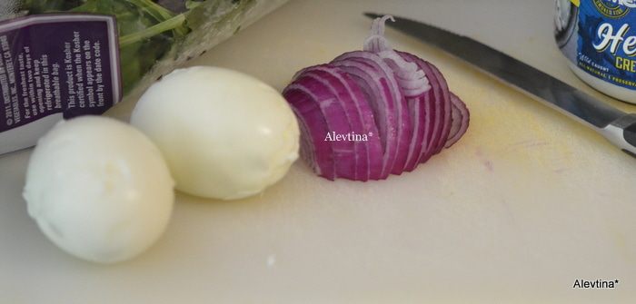 Приготовим овощи для салата. Яйца отварим, очистим. Селедочку порежем на кусочки , луковицу порубим. Салат из свежих молодых листьев, как рукколы,зндивия, радиккио помоем.