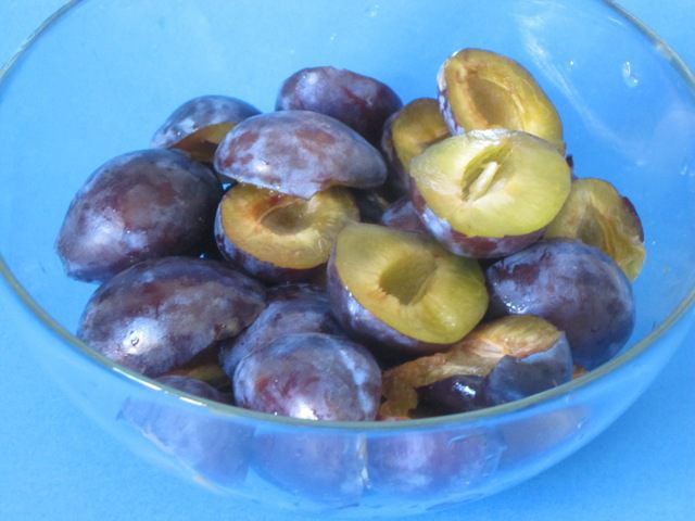 Сливы вымыть, обсушить, разделить на половинки без косточек.