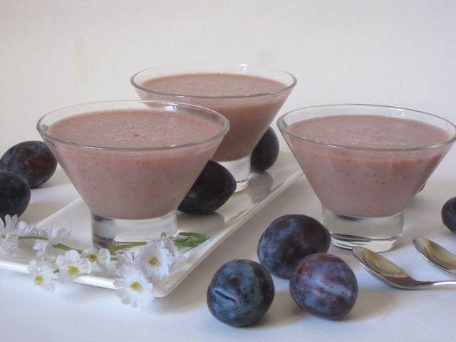 Нагреть до растворения желатина. Соединить со сливовым пюре и хорошо перемешать.