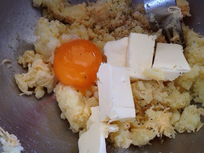 Добавить яичный желток, соль, смесь прованских трав (заменить можно розмарином) и мягкое сливочное масло.
