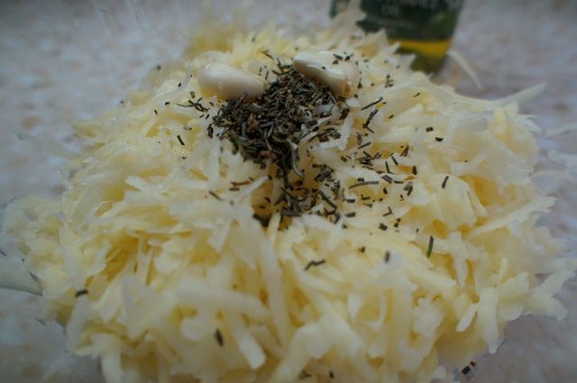 Картофель натереть на крупной терке.