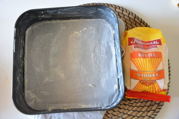 Форму застелить пергаментом, смазать бока и пергамент маслом.
