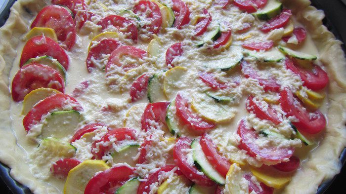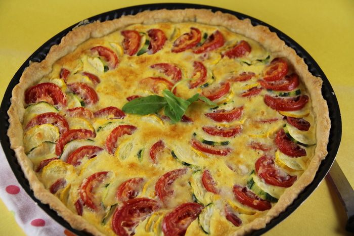Сегодня хотела бы предложить вам вкусный и яркий киш с цукини) он очень хорош как в теплом виде, так и в холодном. Еще в этом рецепте я впервые попробовала вариант теста-основы с добавлением крем-сыра - оно получается нежнее, чем привычное песочное. В рецепте предлагают взять цукини разных цветов - зеленый и желтый. Я так и делала - красиво получается. Но за неимением желтого можно взять 2 зеленых, тоже будет хорошо. Помидоры лучше брать овальные, типа "сливка", у нас это итальянские Сан Марино.Они хорошо режутся и в меру сочные, поэтому отлично держат форму. Буду рада, если и Вы попробуете))