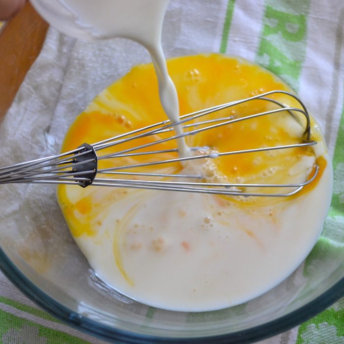 Яйца взбить с молоком.