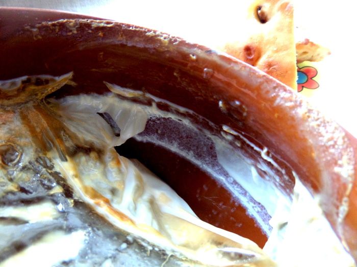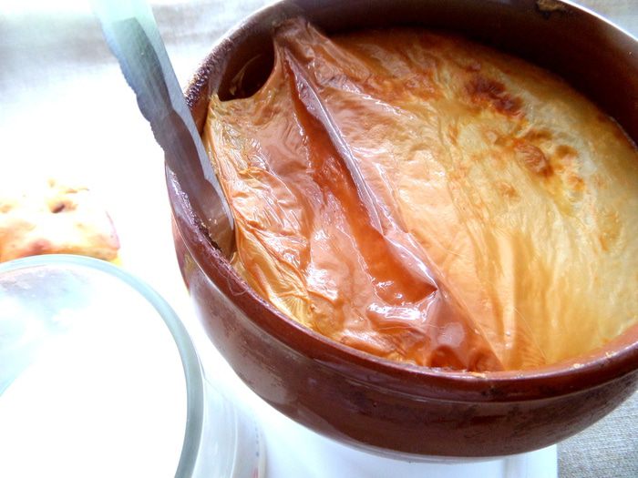 Вскрываем пенку (она,кстати,жареная и вкусная,не как в простом вскипевшем молоке!).