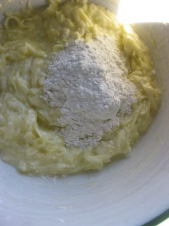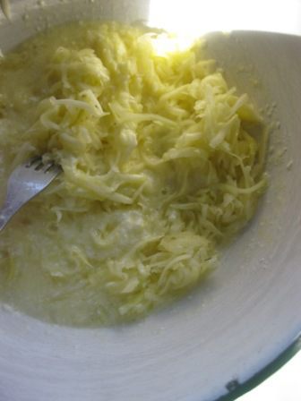 Цукини ( cредние) почистить, натереть на крупной терке, жидкость отжать. Добавить к яичной смеси.