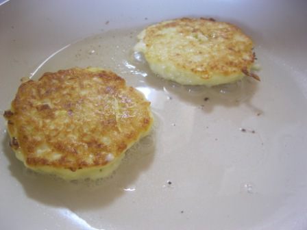Разогреть сковороду, смазать растительным маслом. Жарить оладьи, выкладывая столовой ложкой, с двух сторон, до золотистой корочки)